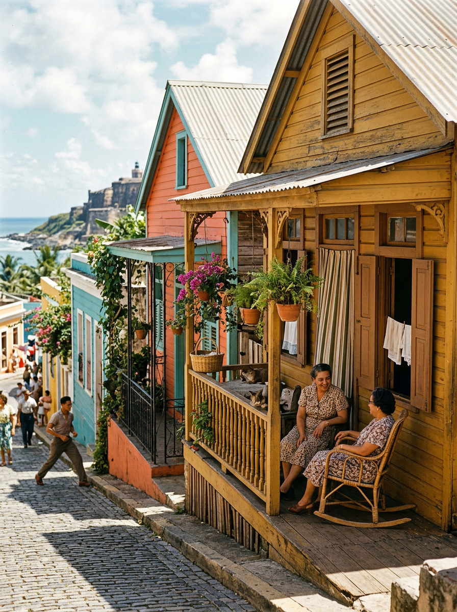 The wooden casita was not merely a dwelling — it was a canvas. Puerto Rican families of the 1950s painted their homes in colors that defied poverty: electric blue, sunflower yellow, flamingo pink. The act of painting was the act of declaring: we are here, we are beautiful, we matter. These colors spoke to a sensory world of resistance and pride.