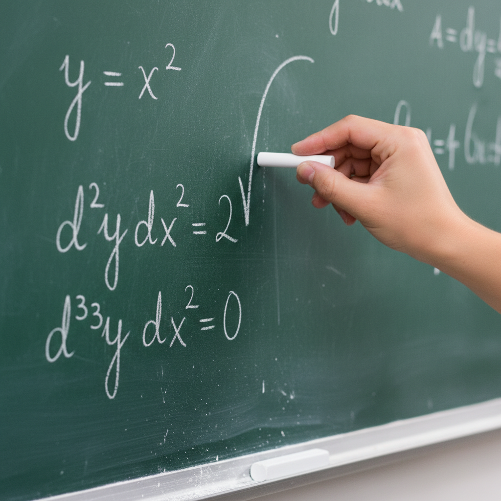 <strong>Example 1:</strong><br>y = x<sup>2</sup><br>Apply Power Rule (n=2):<br>y' = 2x<sup>(2-1)</sup> = <strong>2x</strong><br><br><strong>Example 2 (Polynomial):</strong><br>f(x) = 3x<sup>2</sup> - 5x + 10<br>f'(x) = 3(2x) - 5(1) + 0<br>f'(x) = <strong>6x - 5</strong>