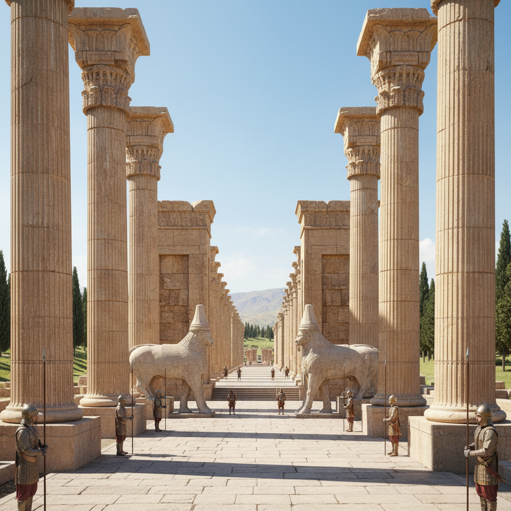 Б.з.д. 518 жылы I Дарий негізін қалаған салтанатты астана. Қала күрделі инженерлік жүйелермен, алып бағандармен және мифтік жануарлардың мүсіндерімен (Ламассу) безендірілген. Бұл жерде Наурыз мерекесі тойланып, халықтар патшаға сыйлықтар әкелген.