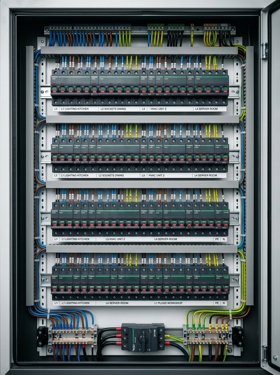 Ein Leistungsschutzschalter (LS-Schalter) ist ein automatisch betätigtes Überstromschutzgerät, das Stromkreise vor Überlast und Kurzschluss schützt.