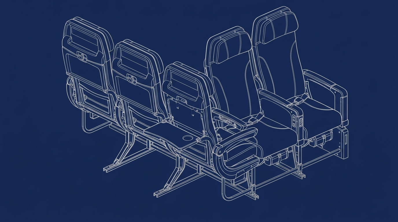 Explore a technical design proposal for lightweight, CS-25 compliant economy aircraft seats featuring sustainable materials and ergonomic engineering.