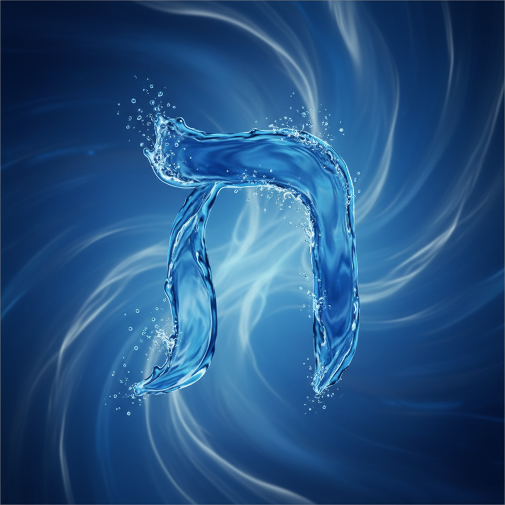 The letter Mem is the central aquatic sound of the Hebrew alphabet. Combining the stability of the closed form and the flow of the open form, it bridges the physical and spiritual, representing 40 (transition), water (essence), and sovereignty.