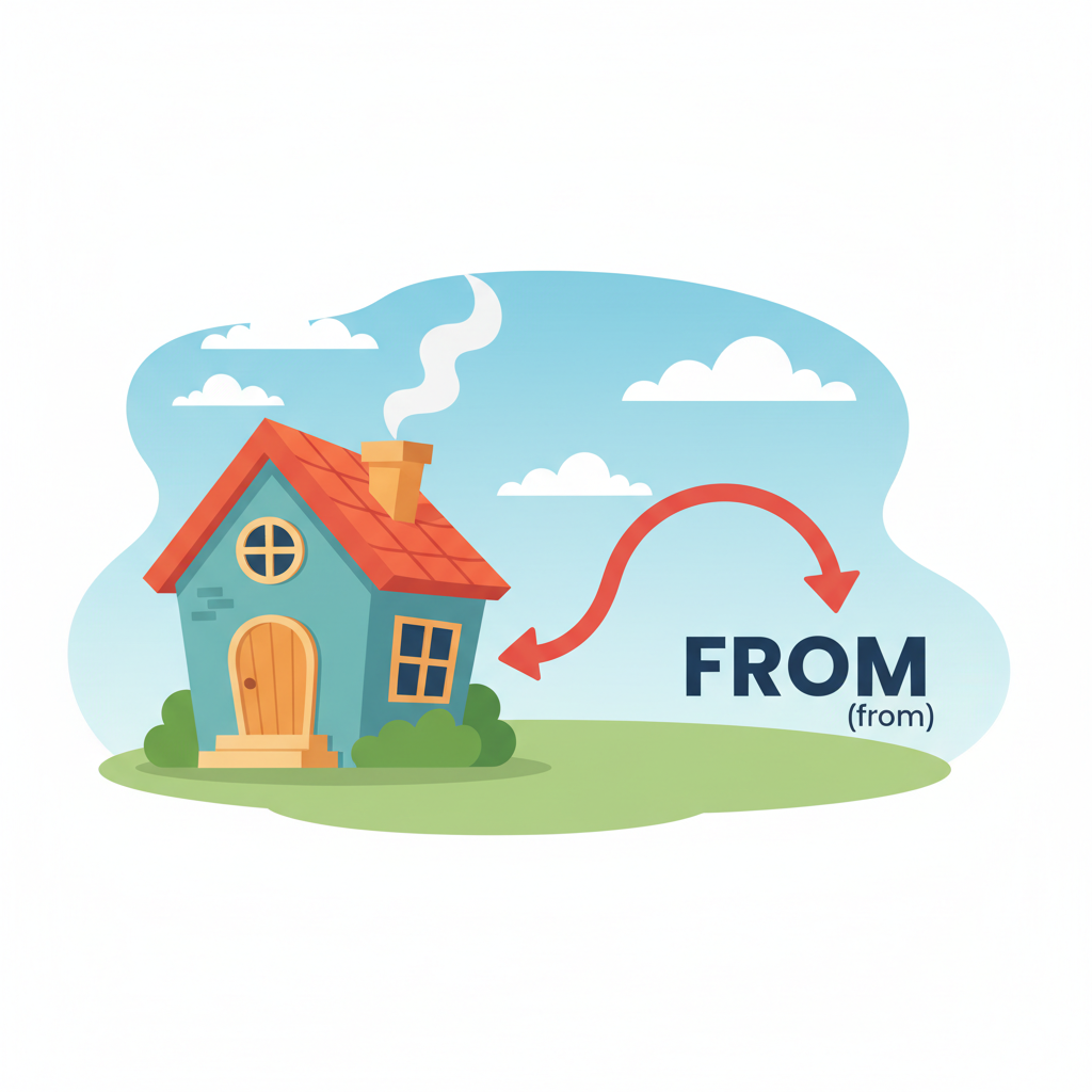 כאשר האות מ' מופיעה בתחילת מילה, היא לרוב משמשת כמילת יחס שמשמעותה 'מ...' (From) או לציון מקור.