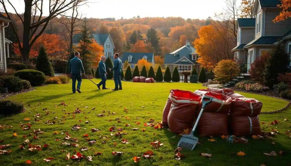 Limpieza de jardines en otoño y decoración navideña.