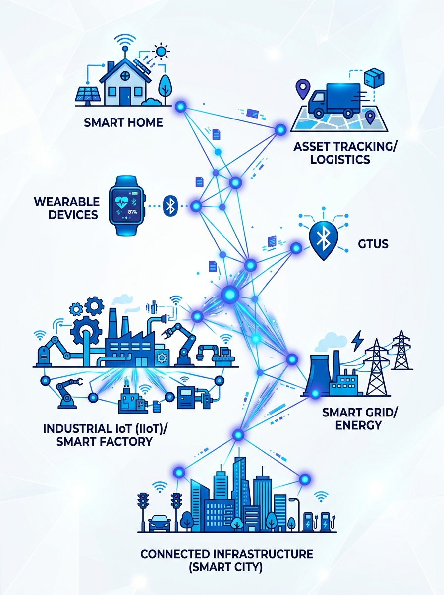 Smart homes, wearable health trackers, industrial automation, smart cities.
