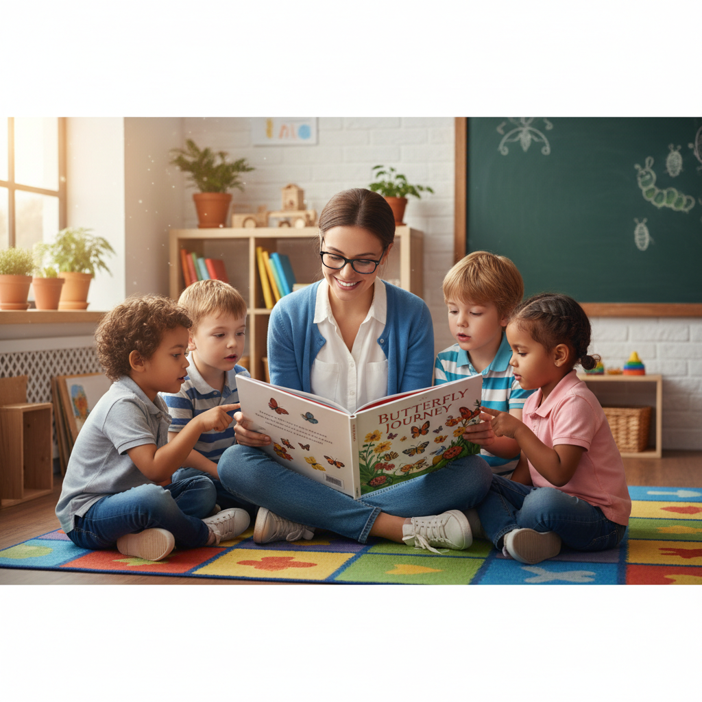 Learn the 4 stages of a butterfly's life cycle: Egg, Larva, Pupa, and Adult. A complete 1st-grade science lesson on metamorphosis and growth.