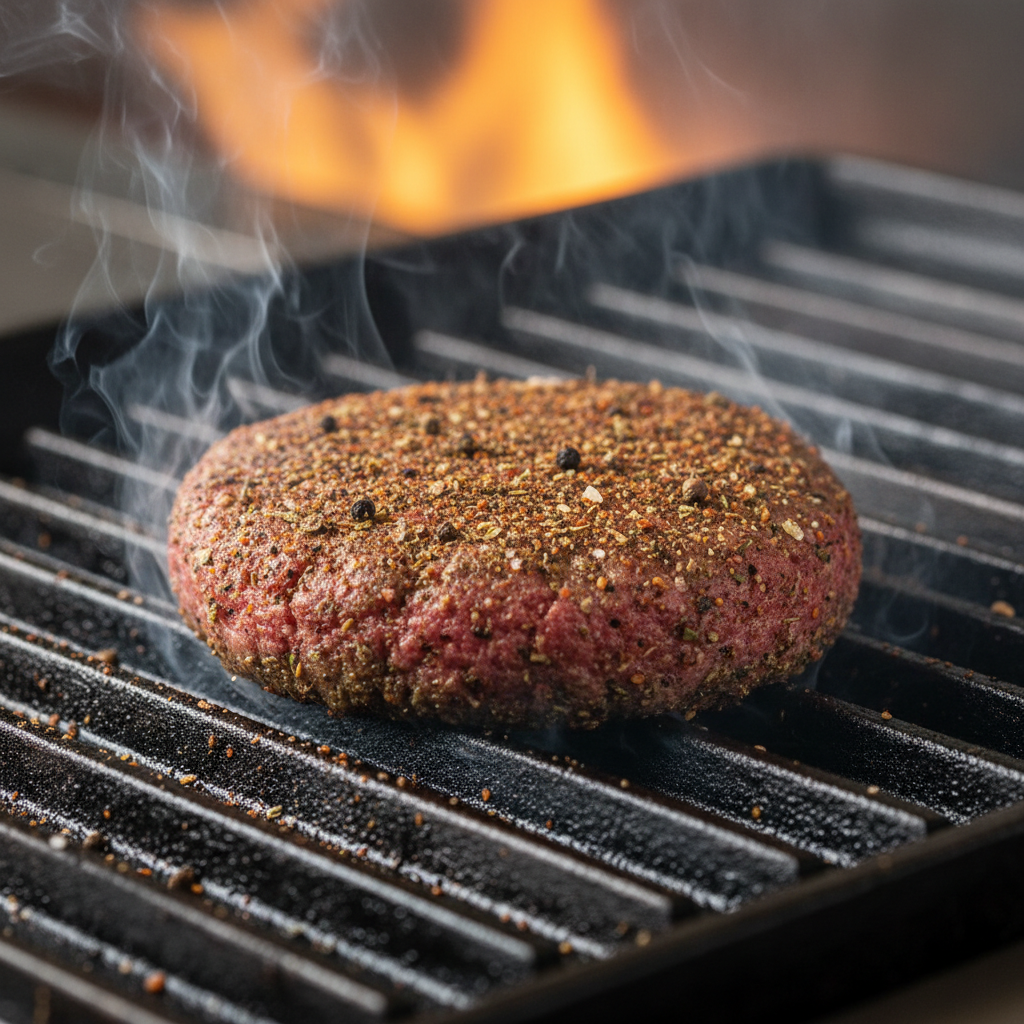 Season patty with 'Oh Canada'. Grill on 'Burger' setting to 155°F (Med Well).