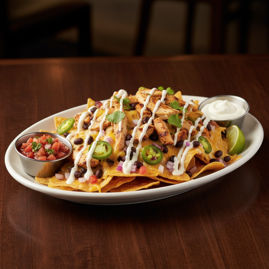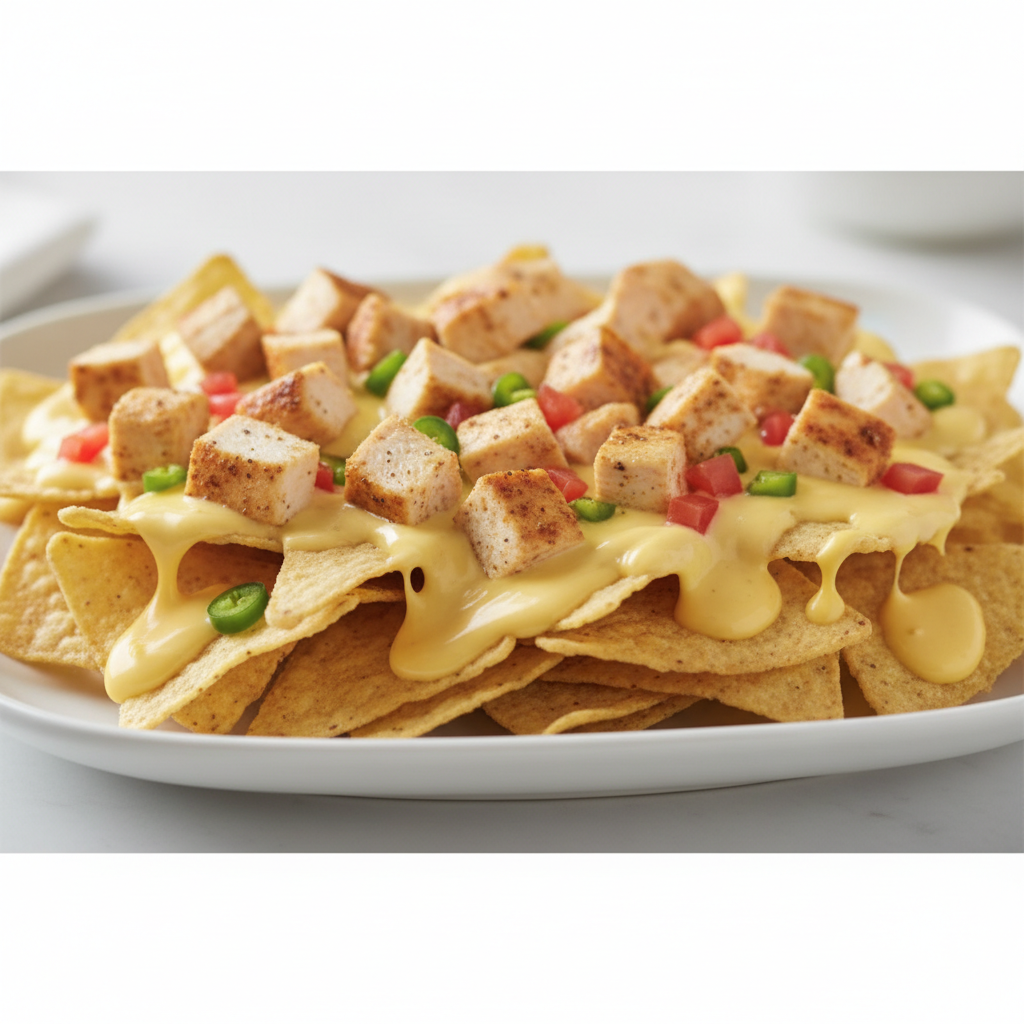 5 oz Prepped Tortilla Chips<br/>6 fl oz Queso<br/>3 oz Diced Chicken<br/>1 oz Red Onion, diced<br/>1 oz Tomato, diced<br/>1 oz Jalapeno, diced<br/>2 fl oz Salsa<br/>1 ea Sour Cream Packet