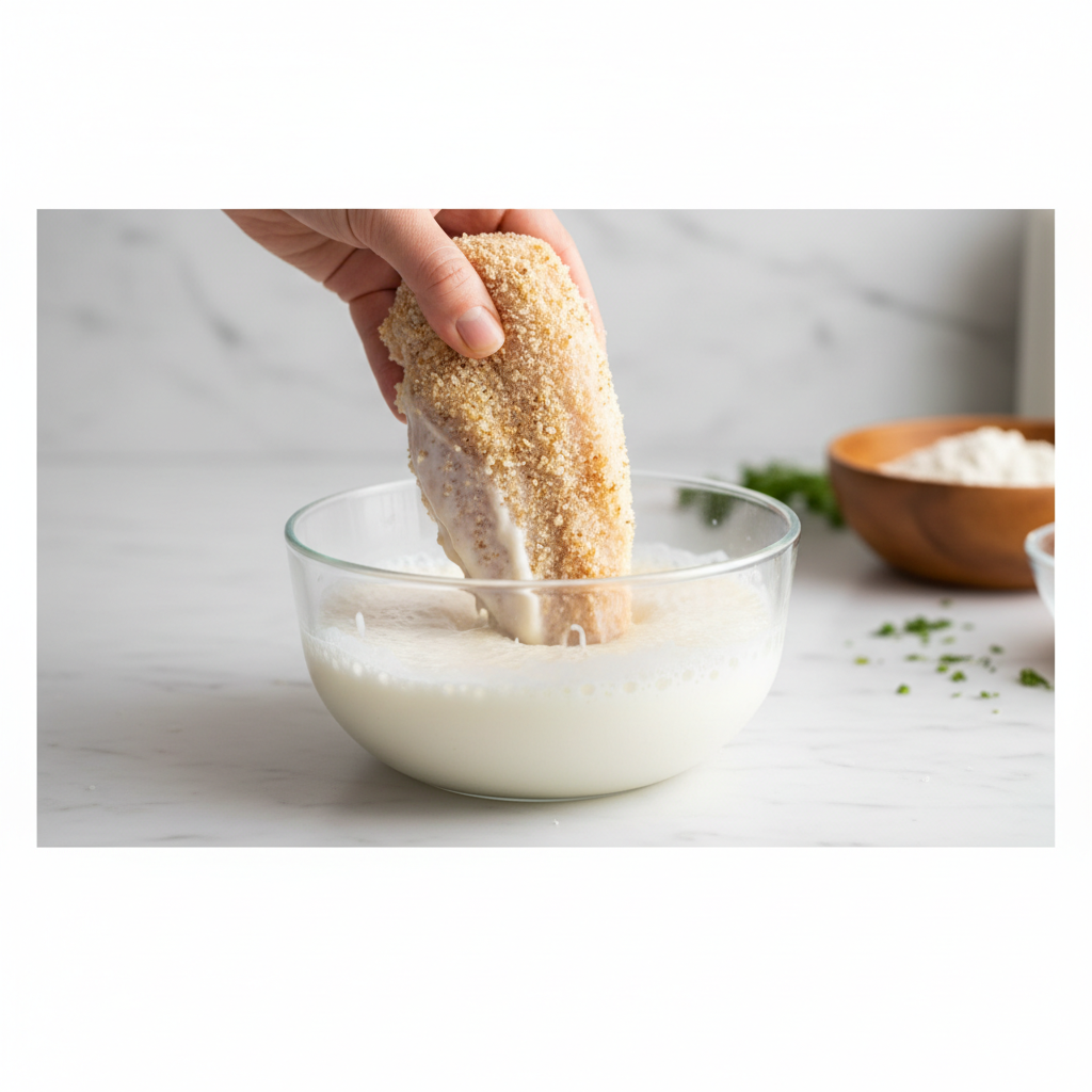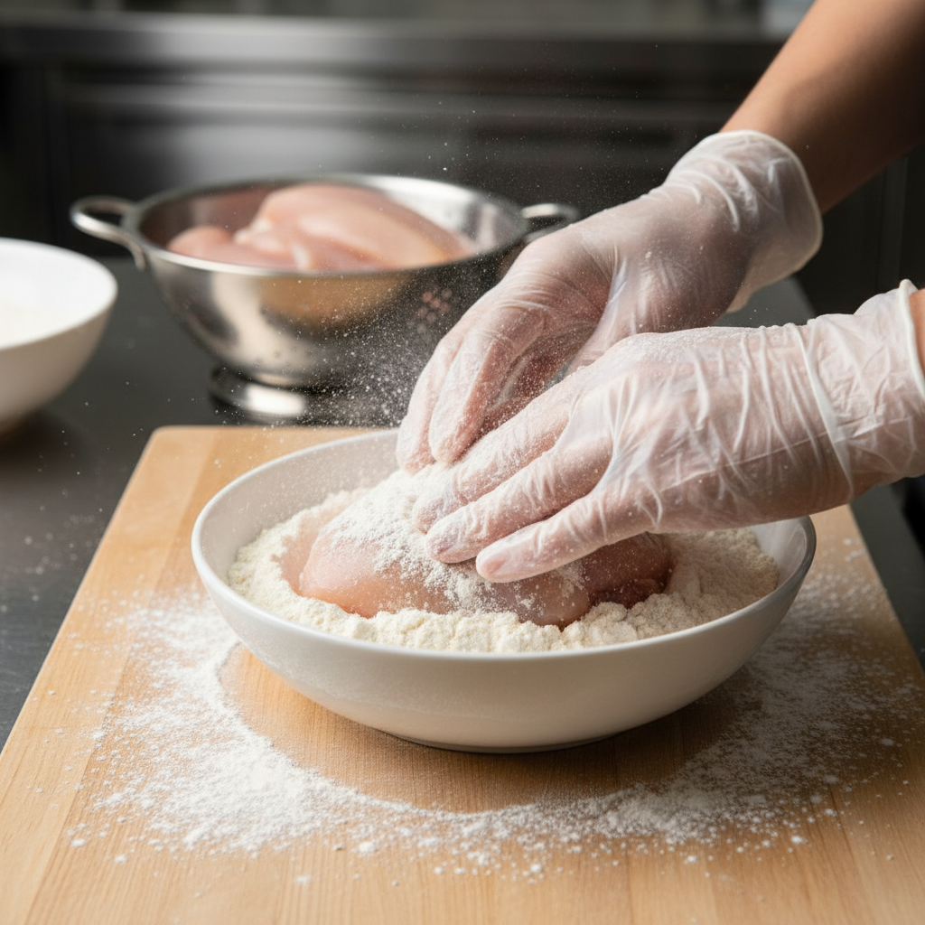 Marinated Chicken Breast<br/>Seasoned Flour<br/>Buttermilk