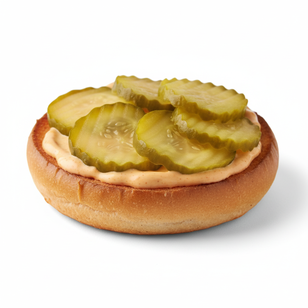 Toast bun. Spread Slap Sauce on bottom bun. Add pickles on bottom.