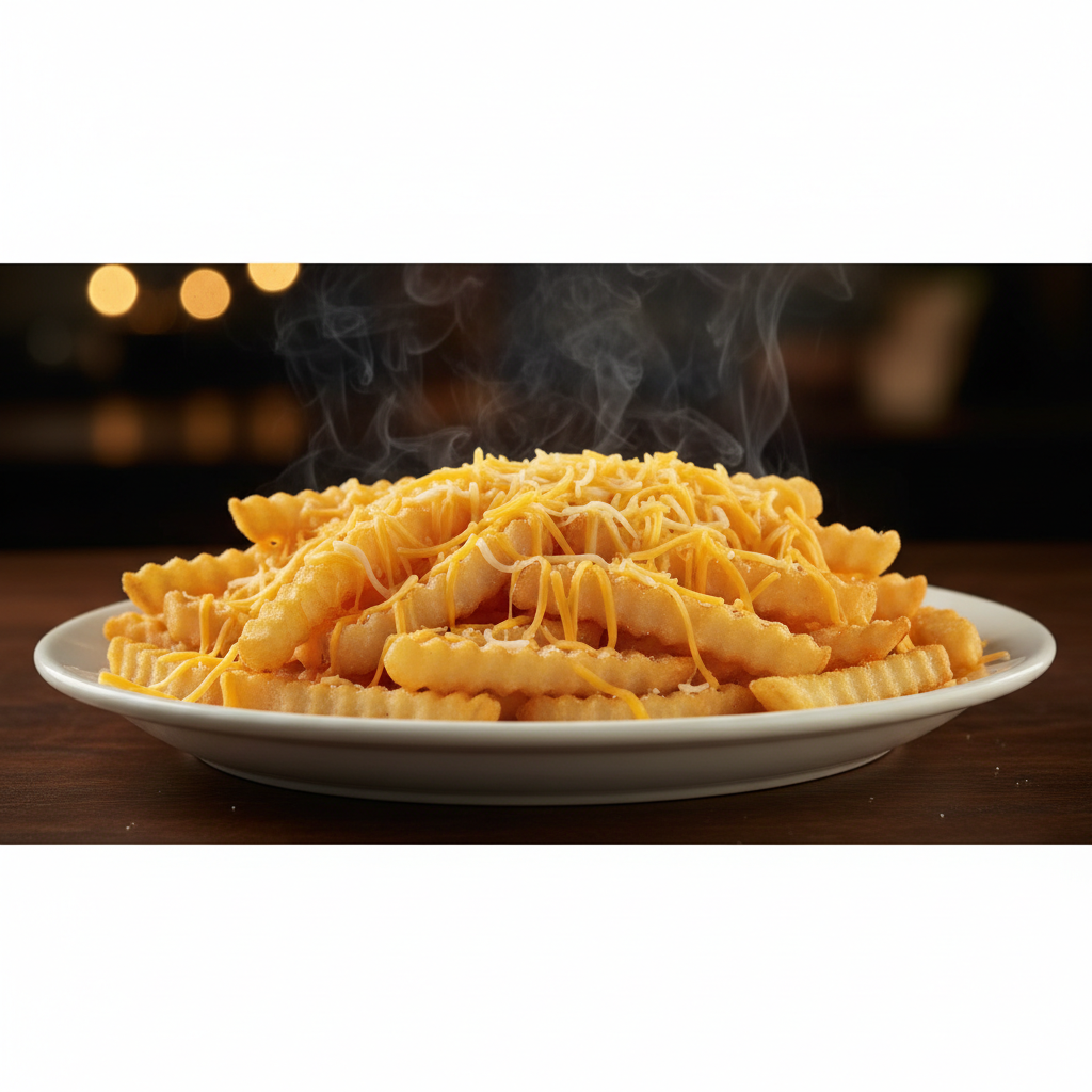 Transfer Fries to center of dish. Immediately add cheddar jack cheese over surface to melt.