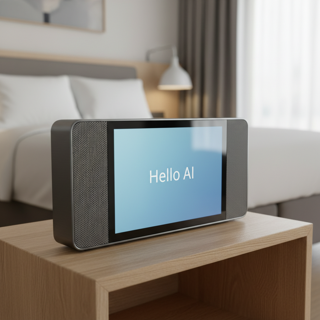 • Voice Trigger AI Concierge • IoT Room Controls • Digital Signage & Bluetooth Speaker • Eliminates paper compendiums