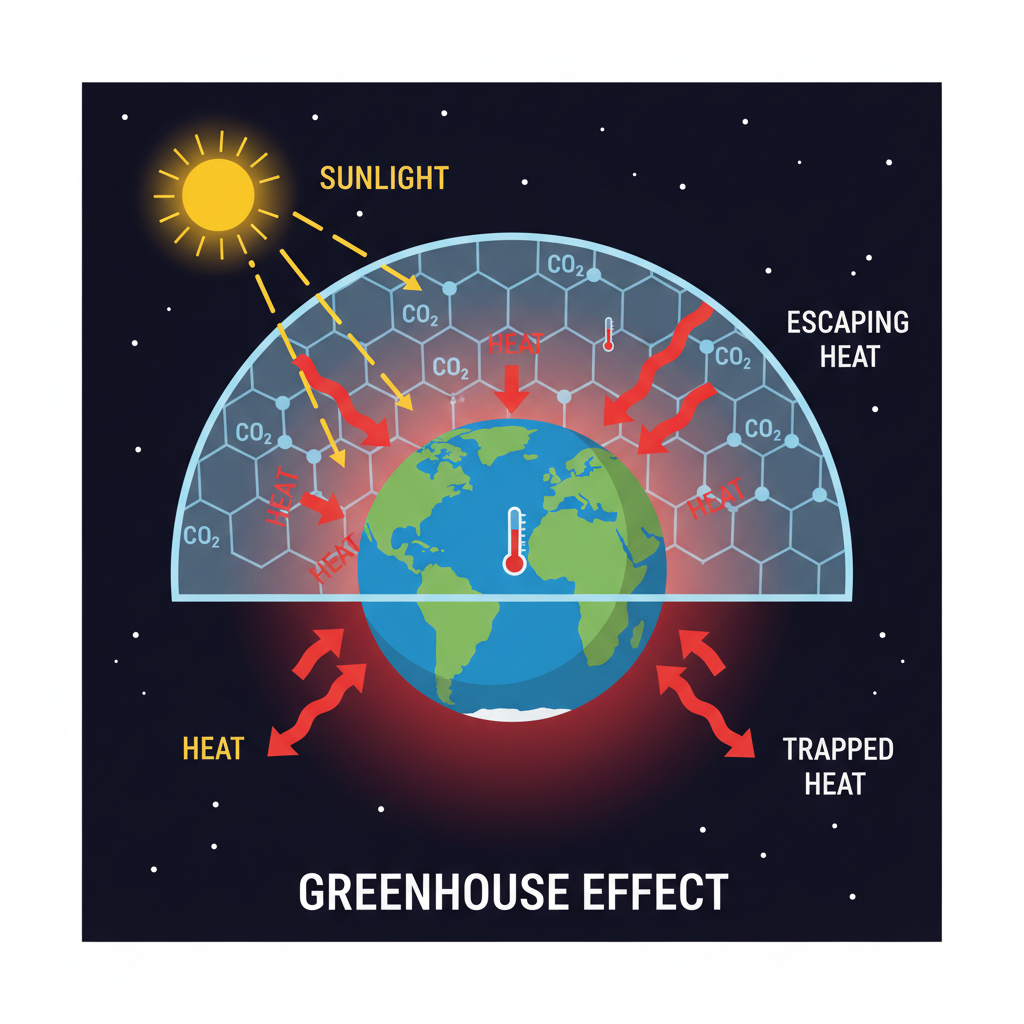 Aktuelle Lage: CO2-Senken (Wälder, Ozeane) absorbieren nur ca. 50% der Emissionen – der Rest heizt den Planeten auf.