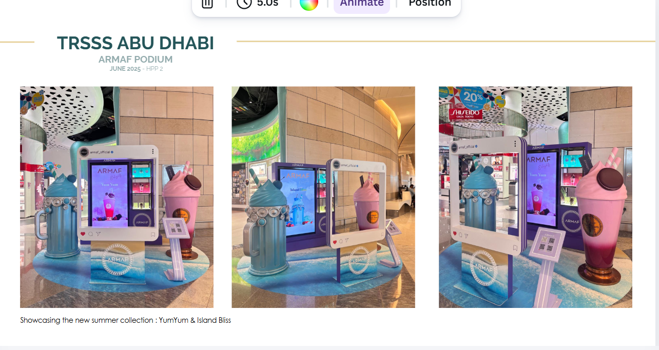 <b>Strategic Launches:</b><br>Our activations at TRSS have set a new benchmark for luxury presentation.<br><br><b>Highlights:</b><br>• <i>Club de Nuit Maleka</i>: Exclusive pre-launch installation.<br>• <i>Essence of Arabia</i>: A thematic takeover in Feb/March 2025.<br>• Premium localized podium designs creating strong visual disruption.