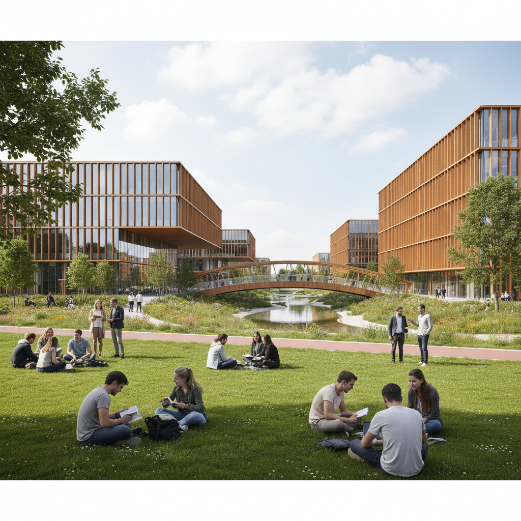Explore the minimalist vision for Utrecht Science Park. A 2030 framework for sustainable innovation, green mobility, and integrated campus life.