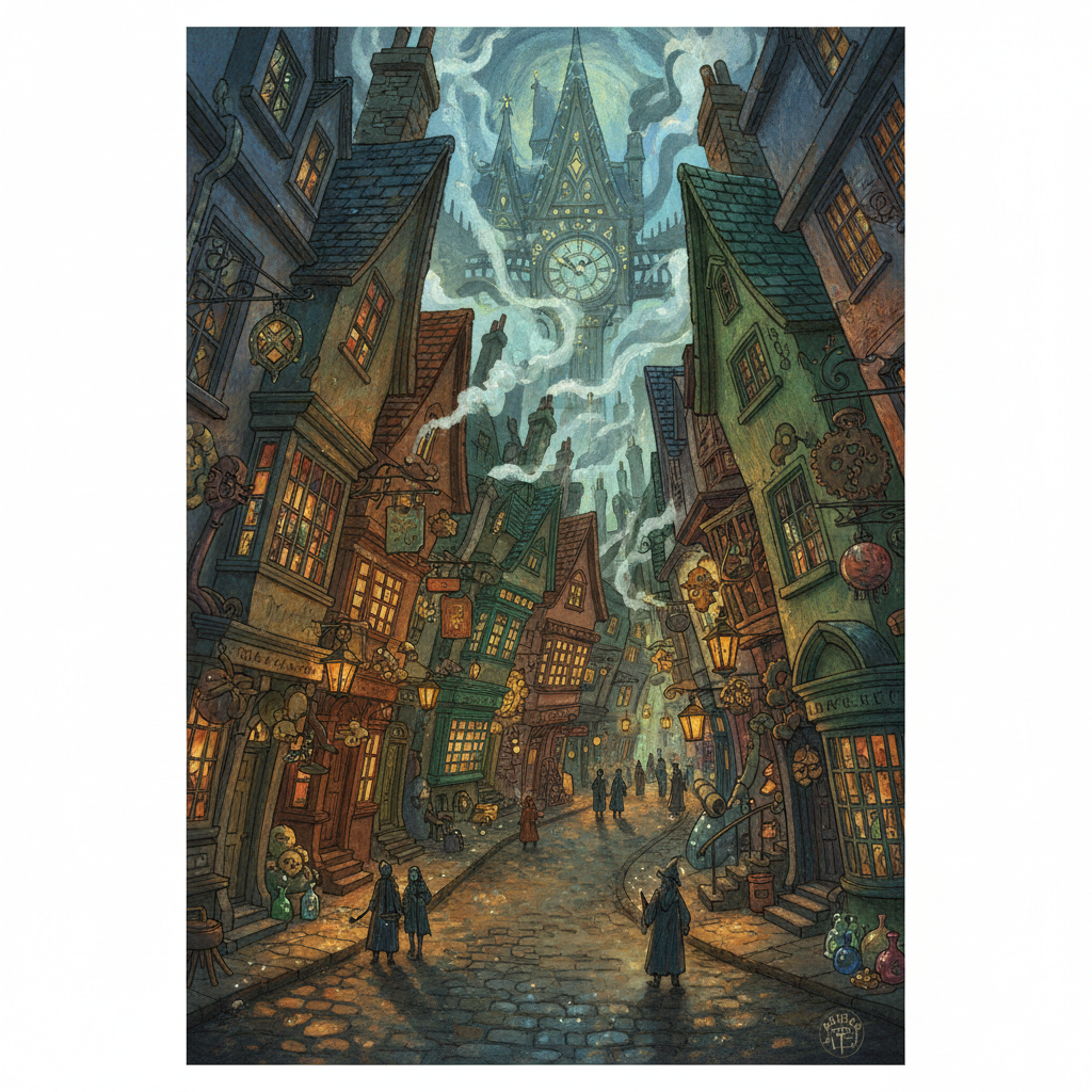 Pasakas pasaule sākas ar ceļojumu un robežas šķērsošanu.<br><br><b>Karaļa Krusta stacija (King's Cross)</b>: Pavisam reāla stacija Londonā, kas stāstā kļūst par vietu, kur ikdiena satiekas ar brīnumu (Platforma 9¾).<br><br><b>Glenfinanas viadukts</b>: Vēsturisks dzelzceļa tilts Skotijā. Tā ainaviskā varenība palīdz radīt sajūtu par tālu, noslēpumainu galamērķi, uz kuru dodas Cūkkārpas ekspresis.