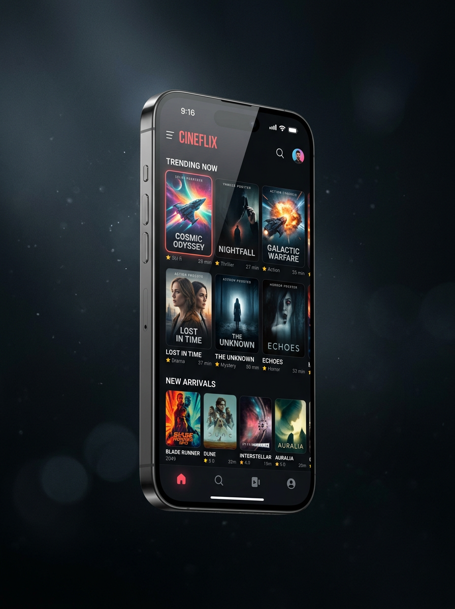 Desenvolvido em OutSystems Mobile App — módulo Movies com arquitetura low-code escalável.