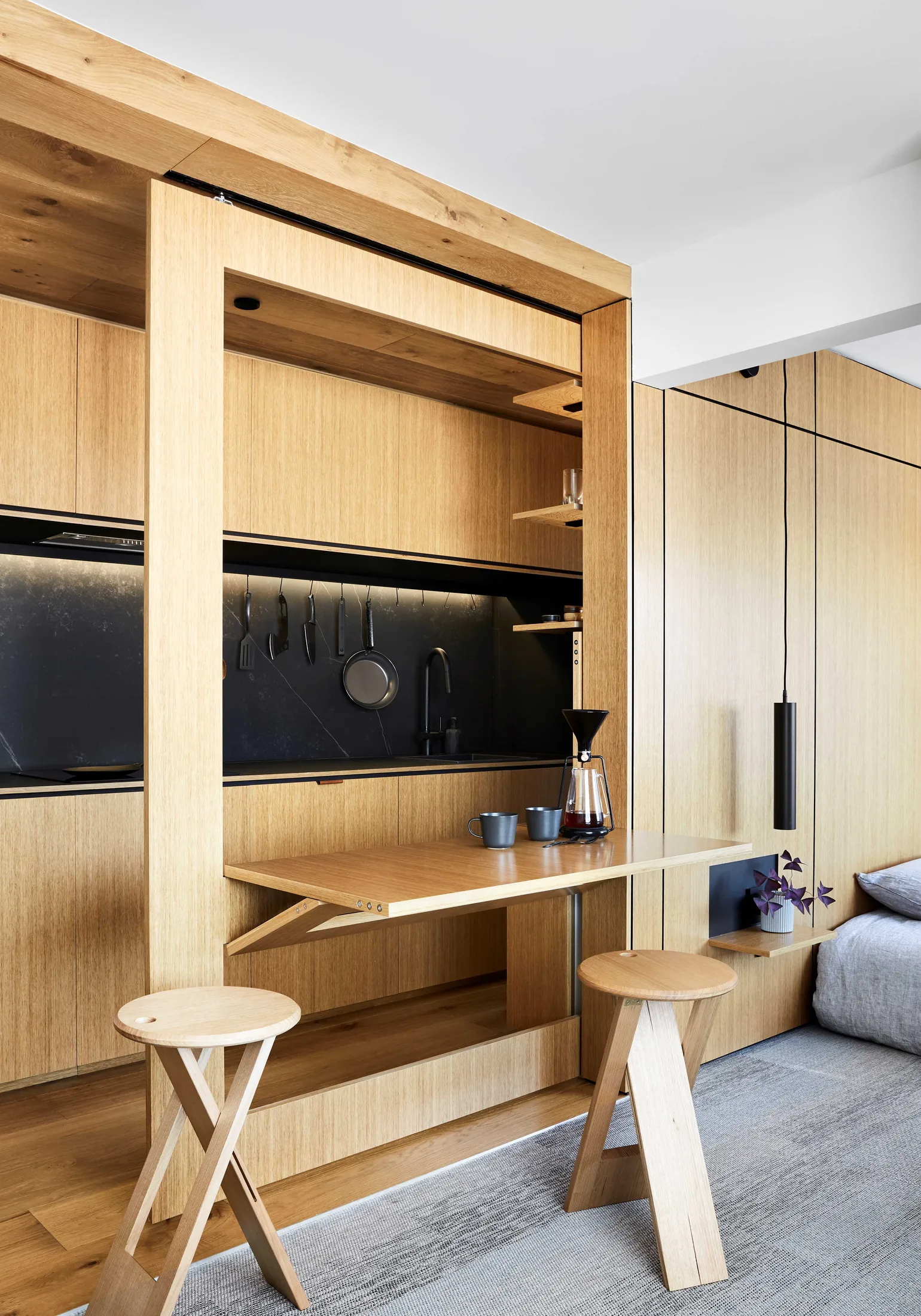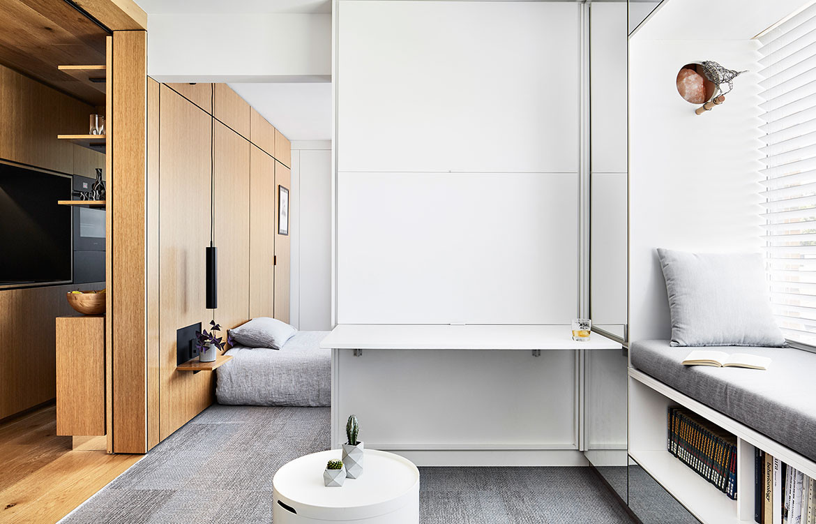 Discover the architectural innovations of Jack Chen's Type Street Apartment, featuring peg walls, disappearing kitchens, and switchable glass for micro-living.