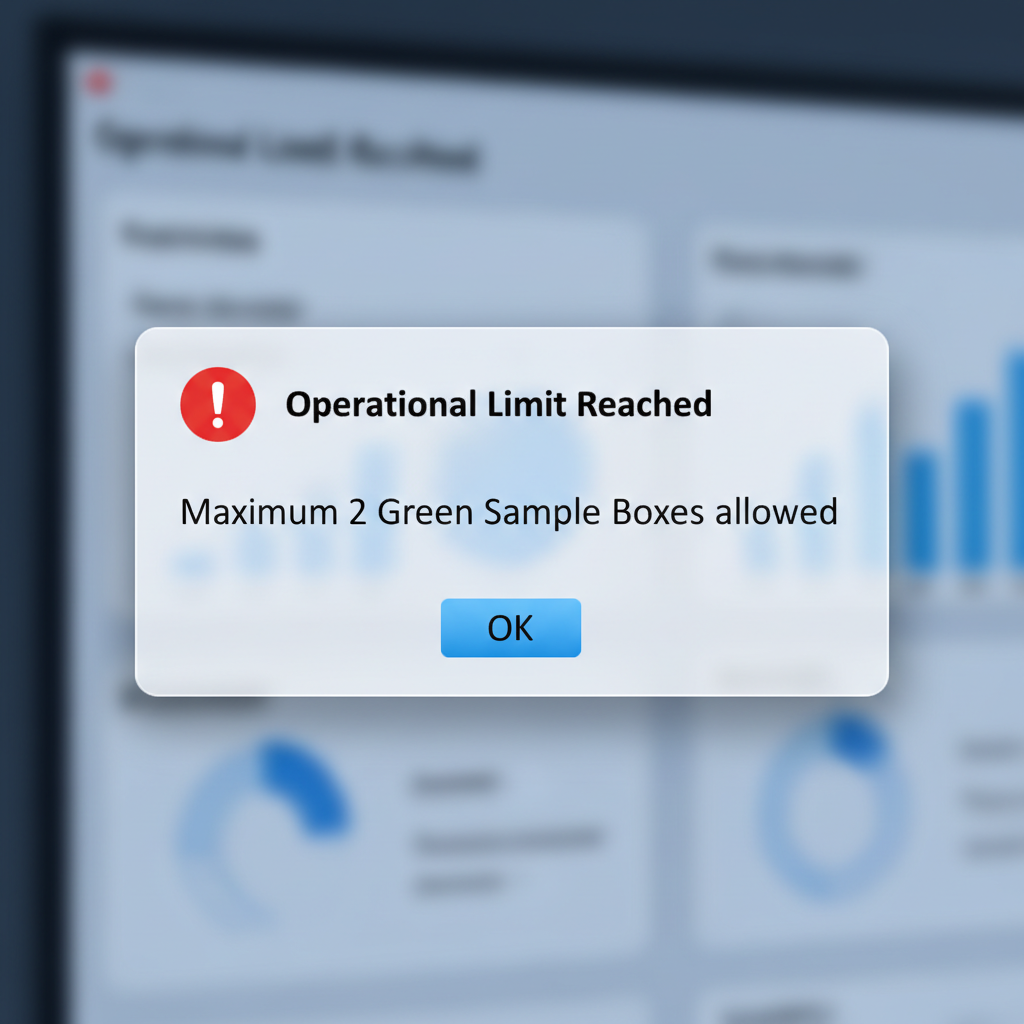 System-enforced rules (Max 2 Green Samples) preventing errors at the source.