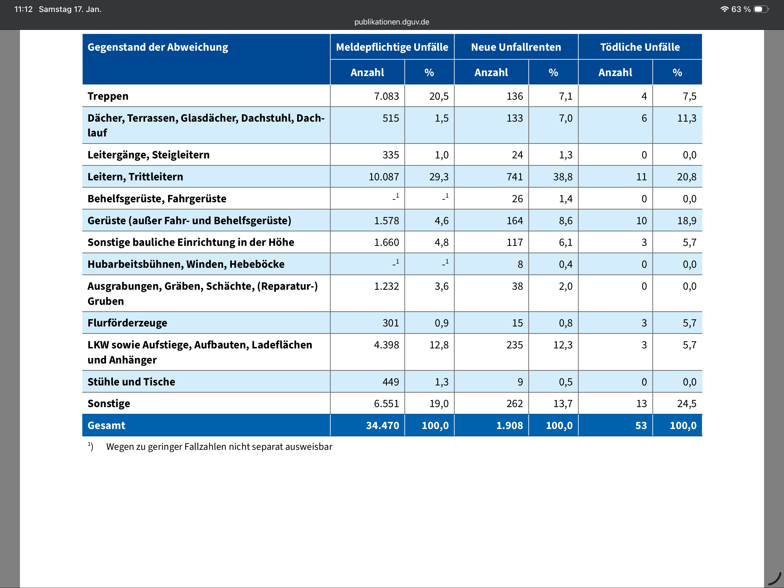 Unfallstatistik & Analyse: Leitern, Treppen & Abstürze