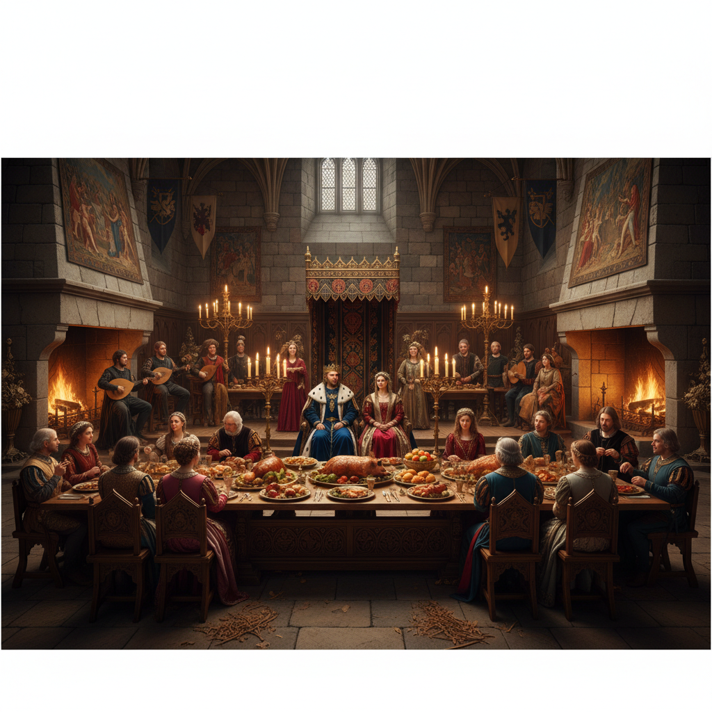 Mais c'était un lieu de fêtes : des banquets étaient organisés dans la grande salle, avec des jongleurs et des musiciens.