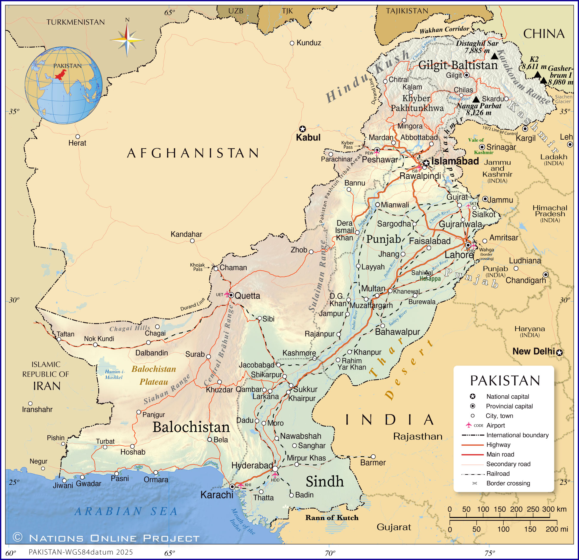 Heimat von 5 der 14 höchsten unabhängigen Gipfel der Welt (die "Achttausender"), einschließlich des K2.