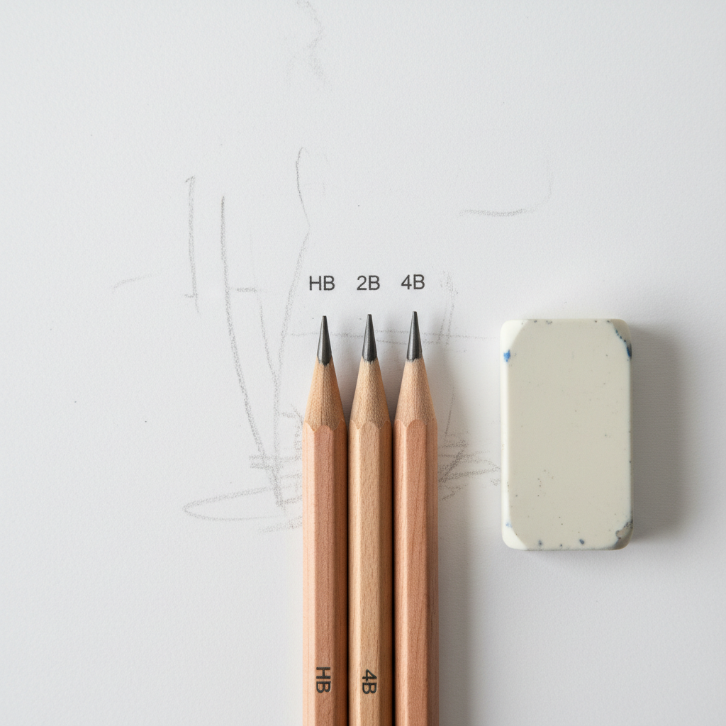 ✏️ Карандаштар: H (катуу), HB (орточо), B же 2B (жумшак).