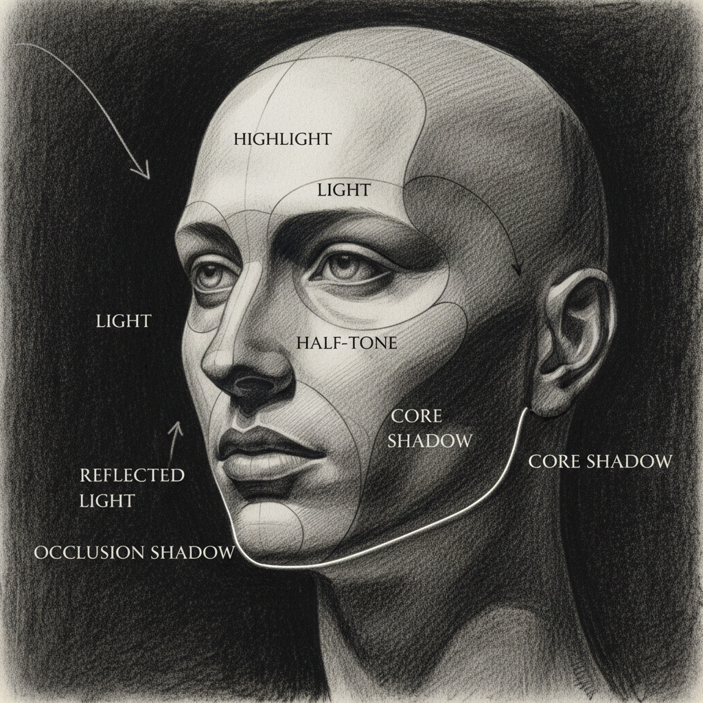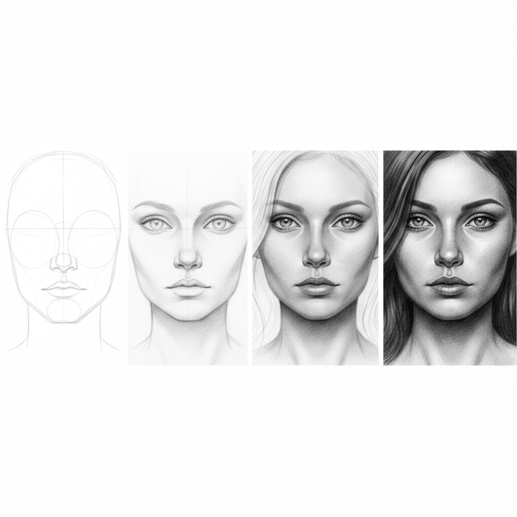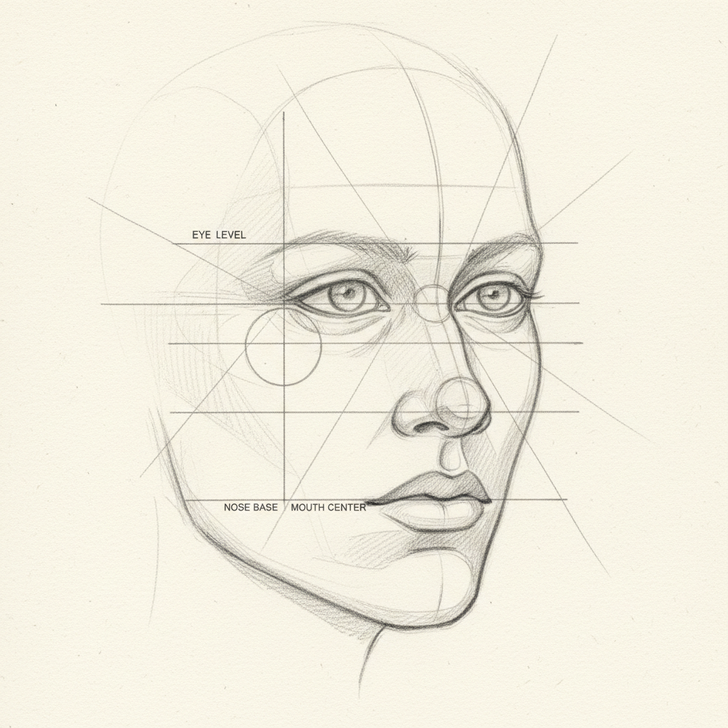 Адамдын жүзүн тартуу боюнча кадамдык нускама: пропорциялар, көздөрдүн жайгашуусу жана көлөкө түшүрүү техникасы.