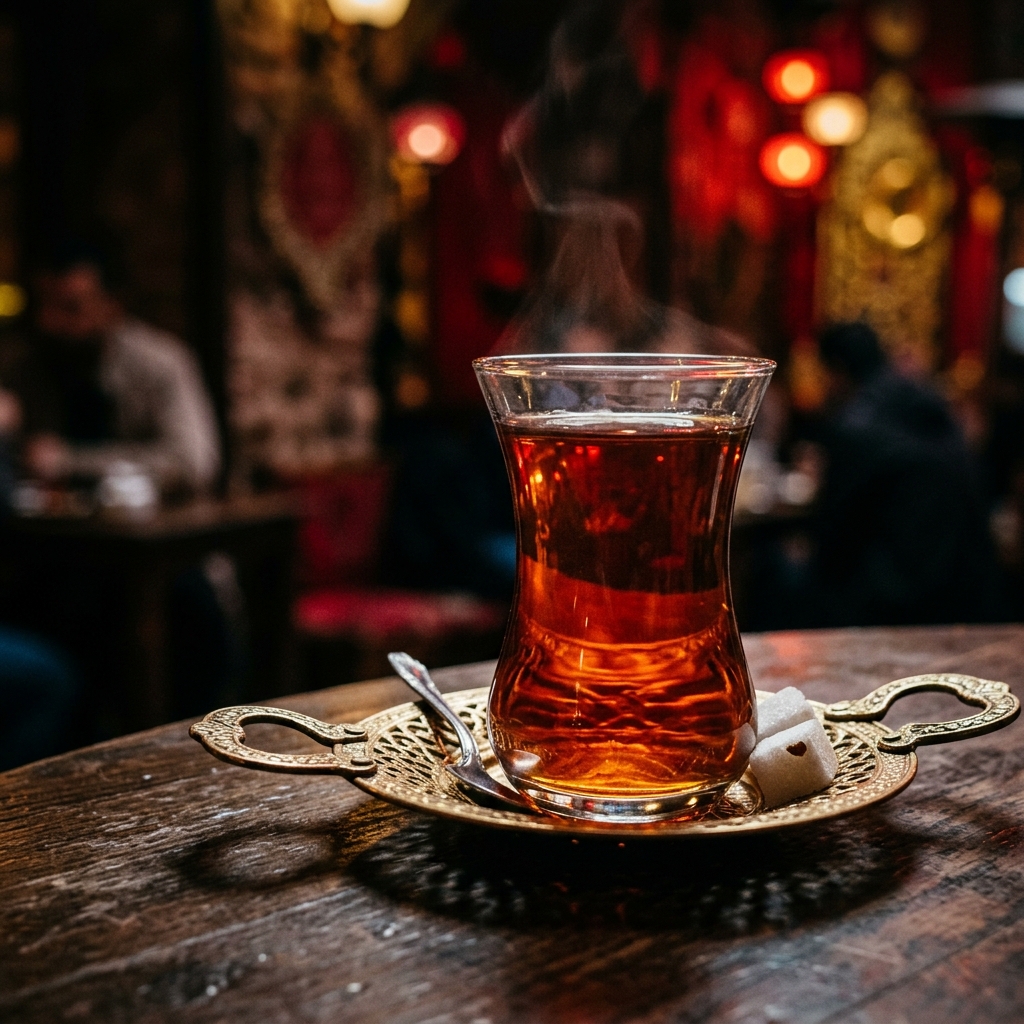 Turkish tea (çay) is the heart of social life, offered everywhere as a genuine gesture of welcome and friendship.