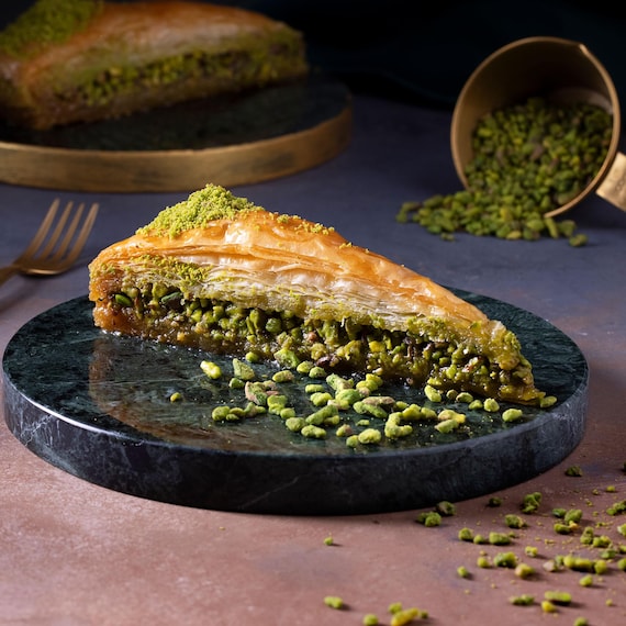 Layers of phyllo pastry & crushed pistachios