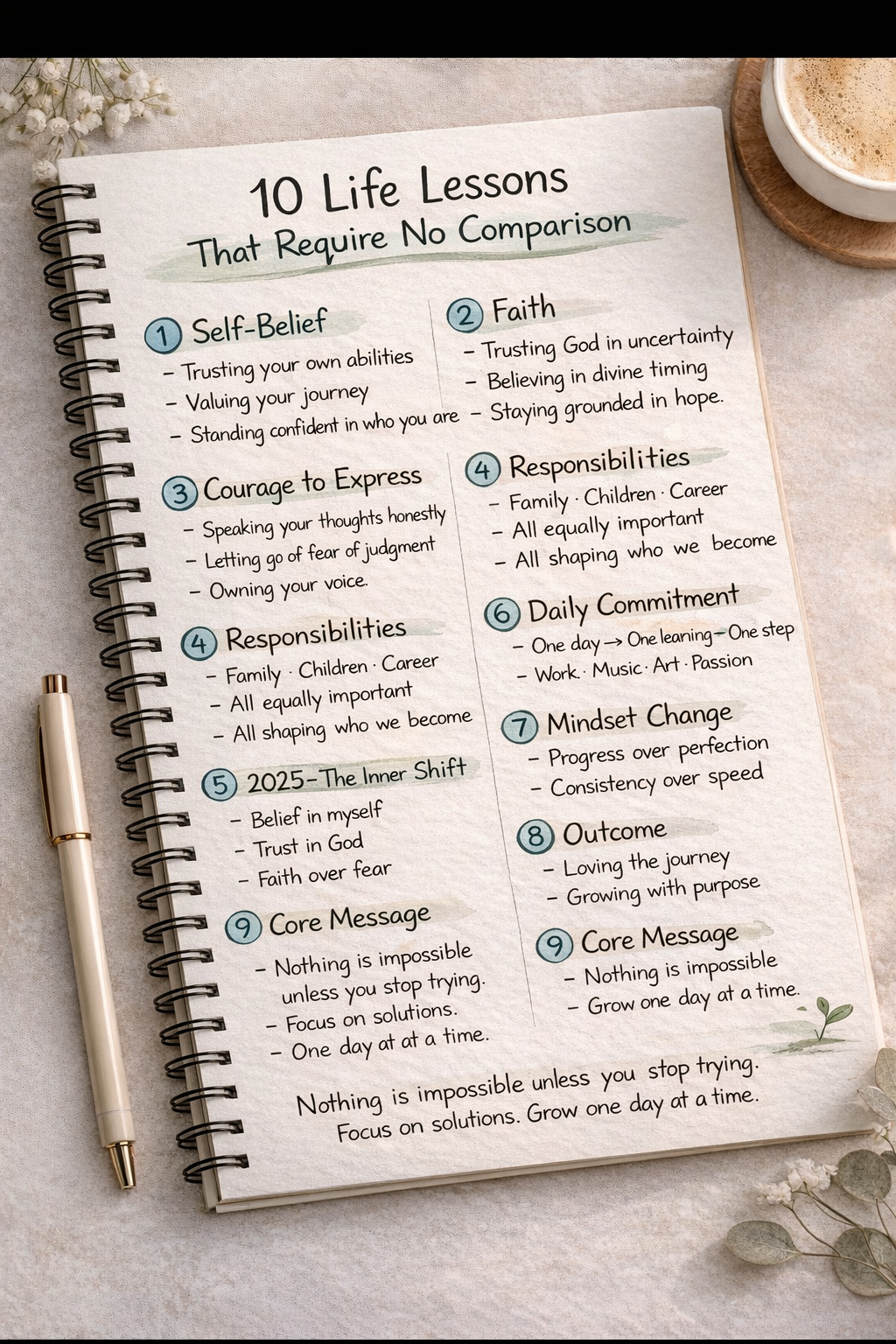 Discover 10 essential life lessons for personal development, focusing on self-belief, faith, courage, and maintaining a growth mindset.