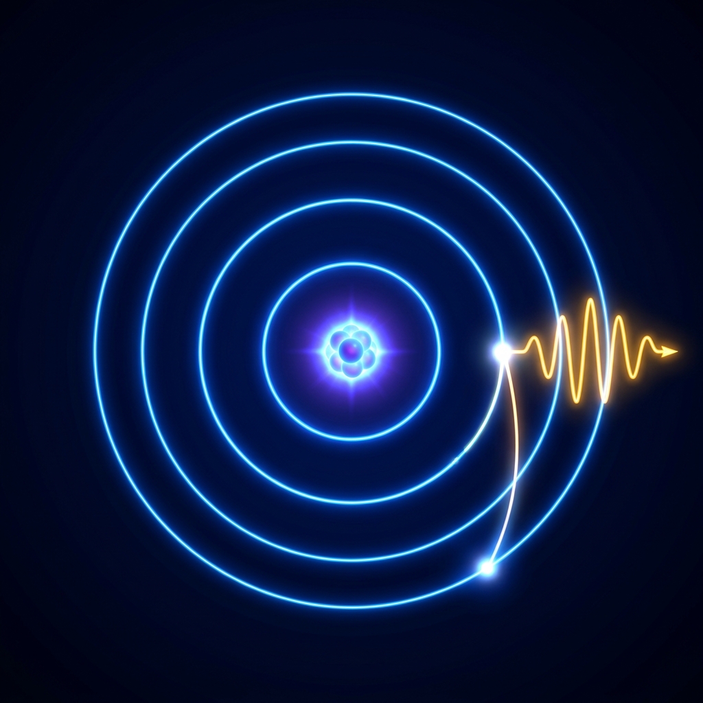 Beim <span style="color: #00e5ff; font-weight: 500;">Sprung zwischen Bahnen</span> wird Energie als Licht emittiert oder absorbiert