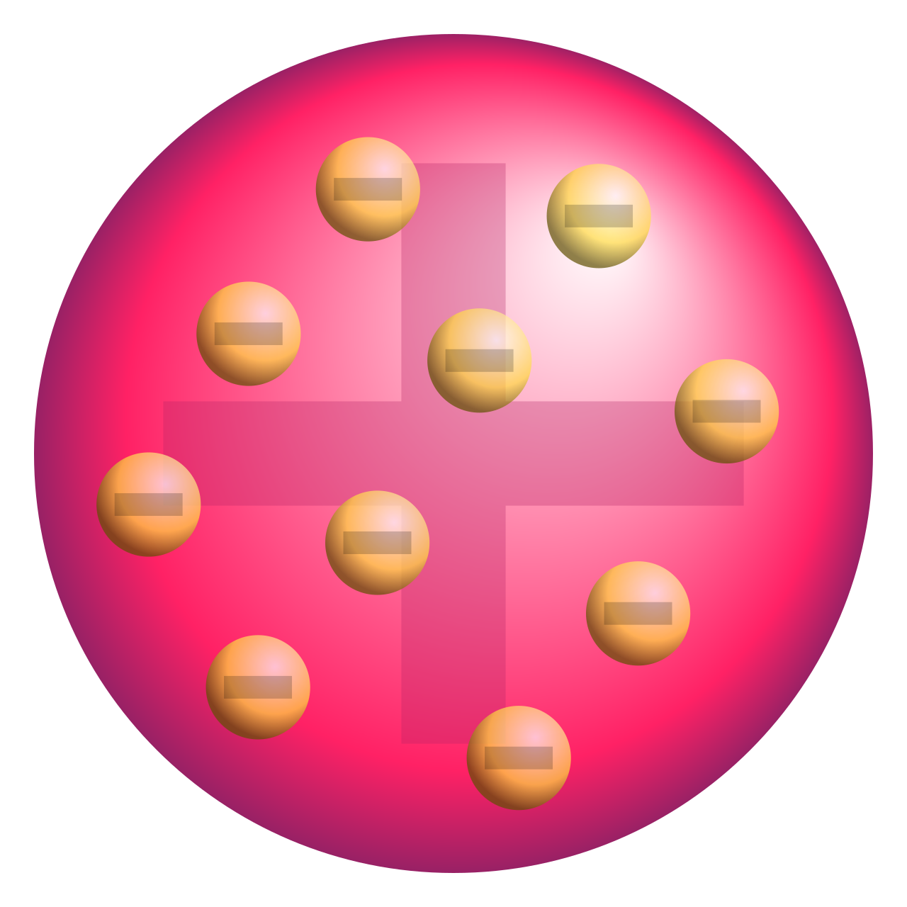 Rosinenkuchen-Modell,<br>Elektronen eingebettet