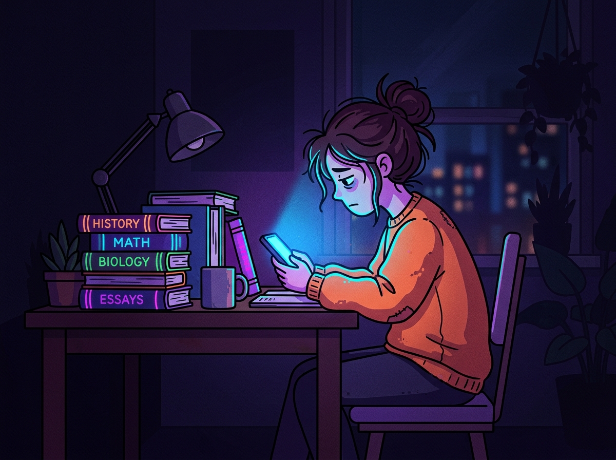 Procrastination & distraction — a shared experience among students. Notification leads to hours of scrolling.