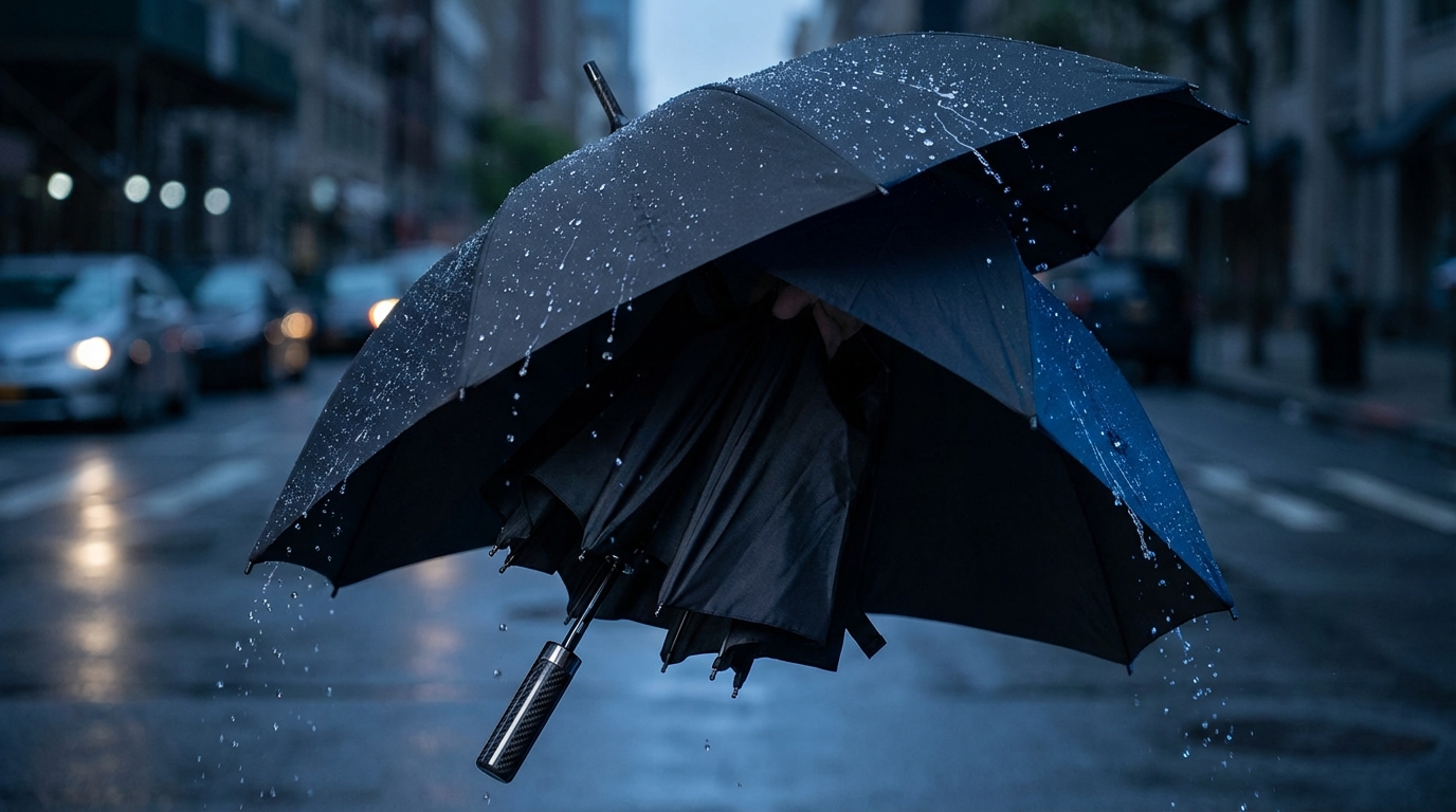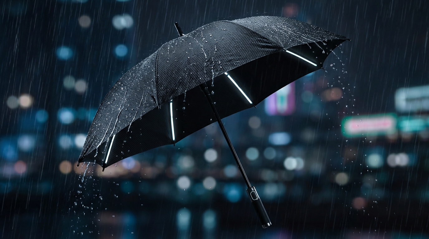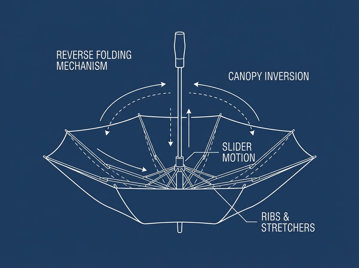 Discover the patented inverted-folding umbrella technology designed to eliminate wet floors, improve safety, and revolutionize urban commuting mobility.