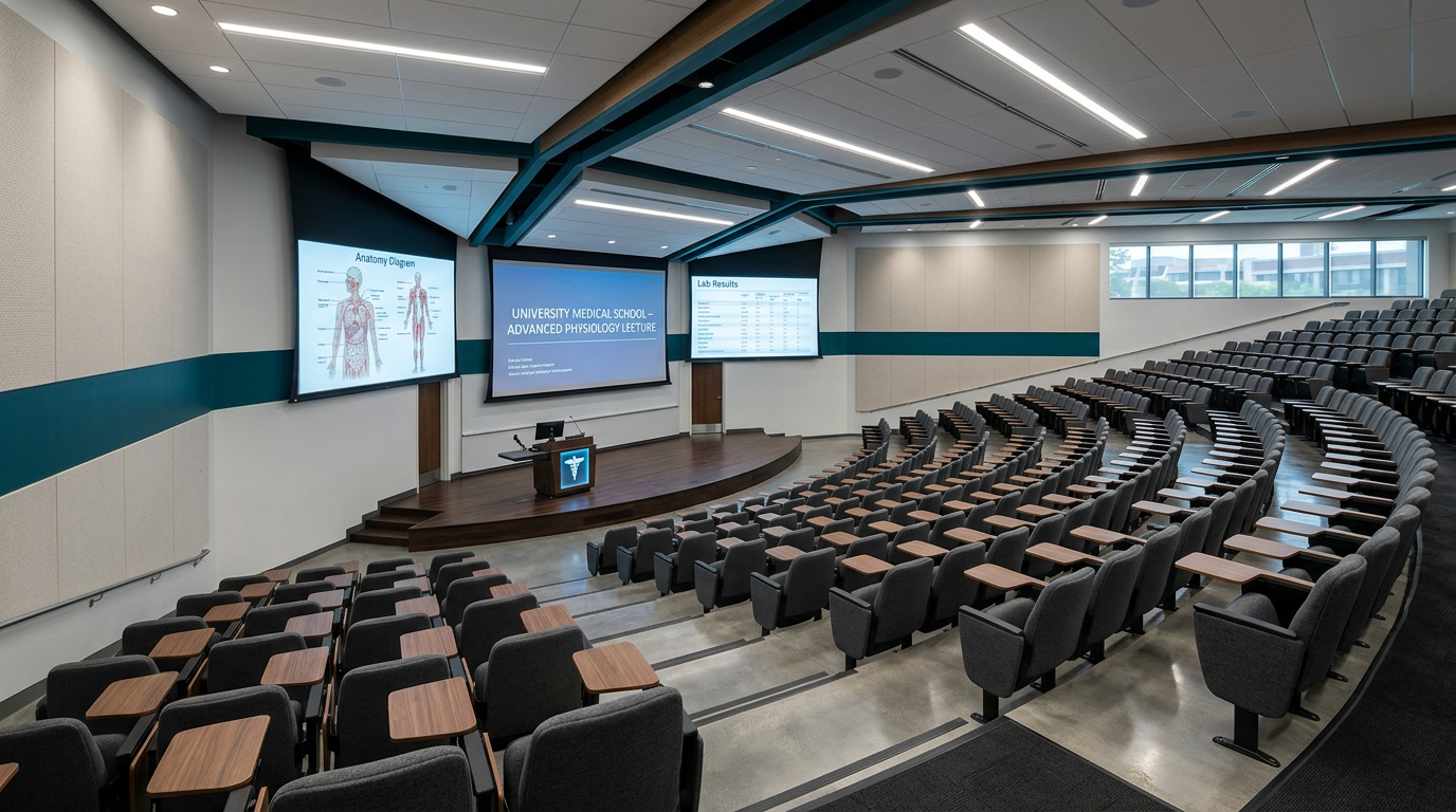 Designed for large-scale medical teaching, MBBS lectures, and major academic events. Equipped with advanced audiovisual systems and video conferencing.