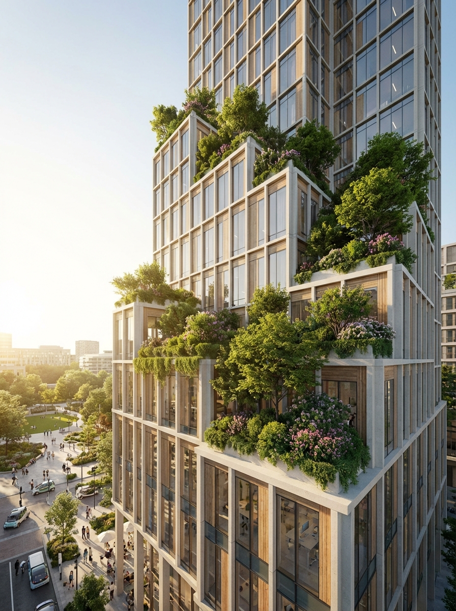 Vertical Forests: Converting high-rise facades into living ecosystems to absorb CO2.