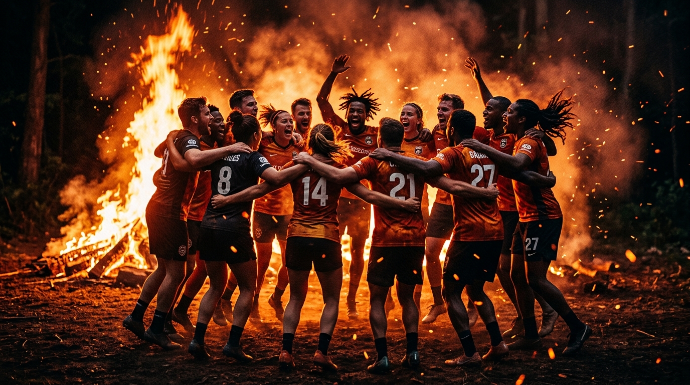 FEUER IN DIE<br><span style="color: #F4A228; text-shadow: 0 0 35px rgba(255,59,0,0.4);">TEAMDYNAMIK</span>