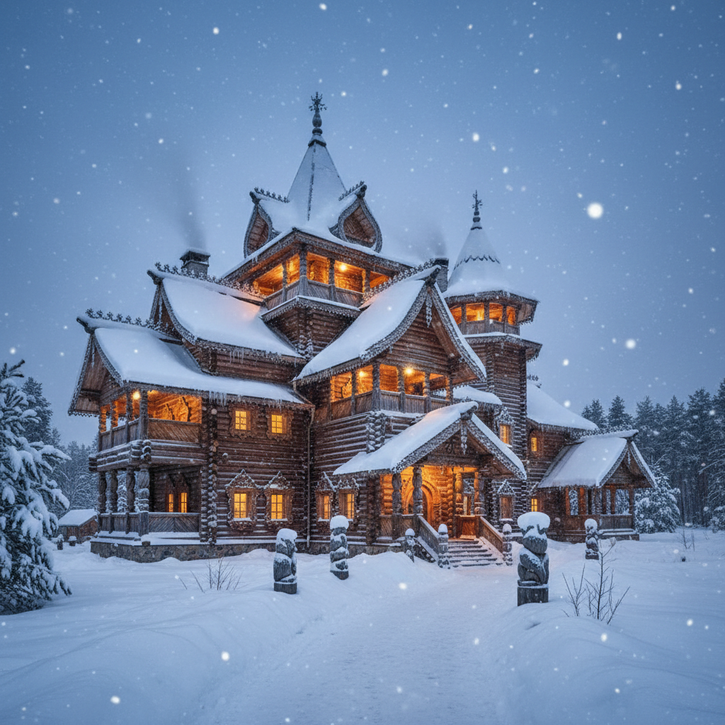 Вотчина Деда Мороза находится в сосновом бору недалеко от города Великий Устюг (Вологодская область). Там есть терем, тропа сказок, зоосад и почта, куда приходят миллионы писем.