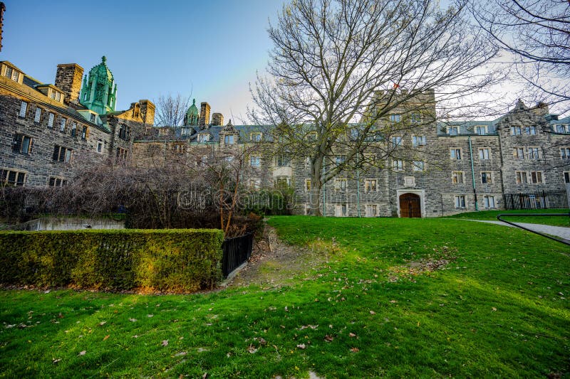 Right in downtown Toronto. CN Tower views. Campus blends into city streets. Trinity feels like Oxford. Academic intensity very high. Access to nightlife, restaurants, Kensington Market, Annex neighborhood. Subway right outside campus.