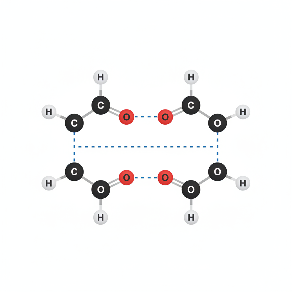 Высокие температуры кипения объясняются образованием прочных водородных связей между молекулами кислот. Карбоновые кислоты часто существуют в виде димеров, где две молекулы связаны двумя водородными мостиками.