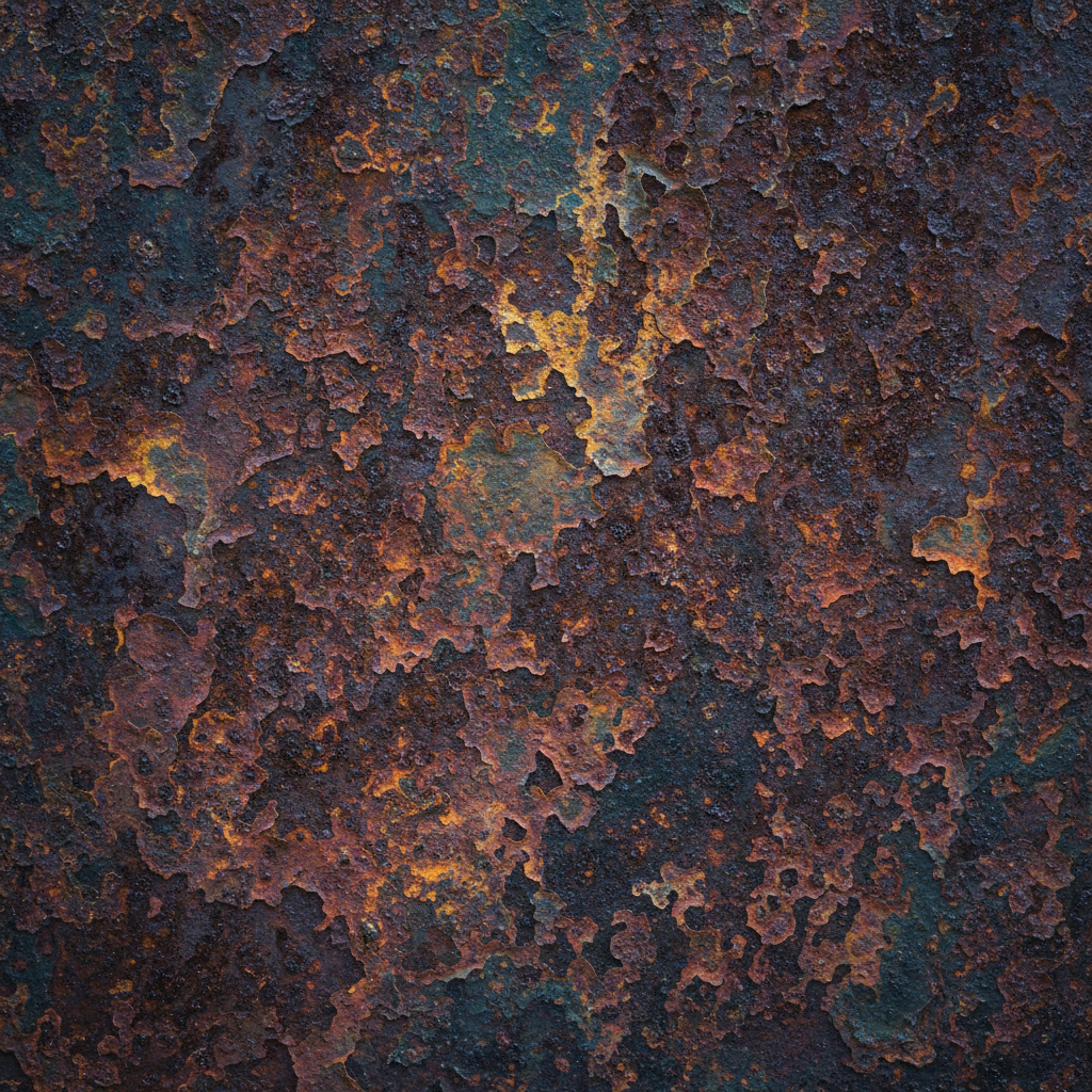Raw materials meet industrial structures. The palette combines deep Basalt Black and Mineral Green with flash colors like Oxide Rust. Textures evoke stone surfaces, crushed velvet, and layered sediment.