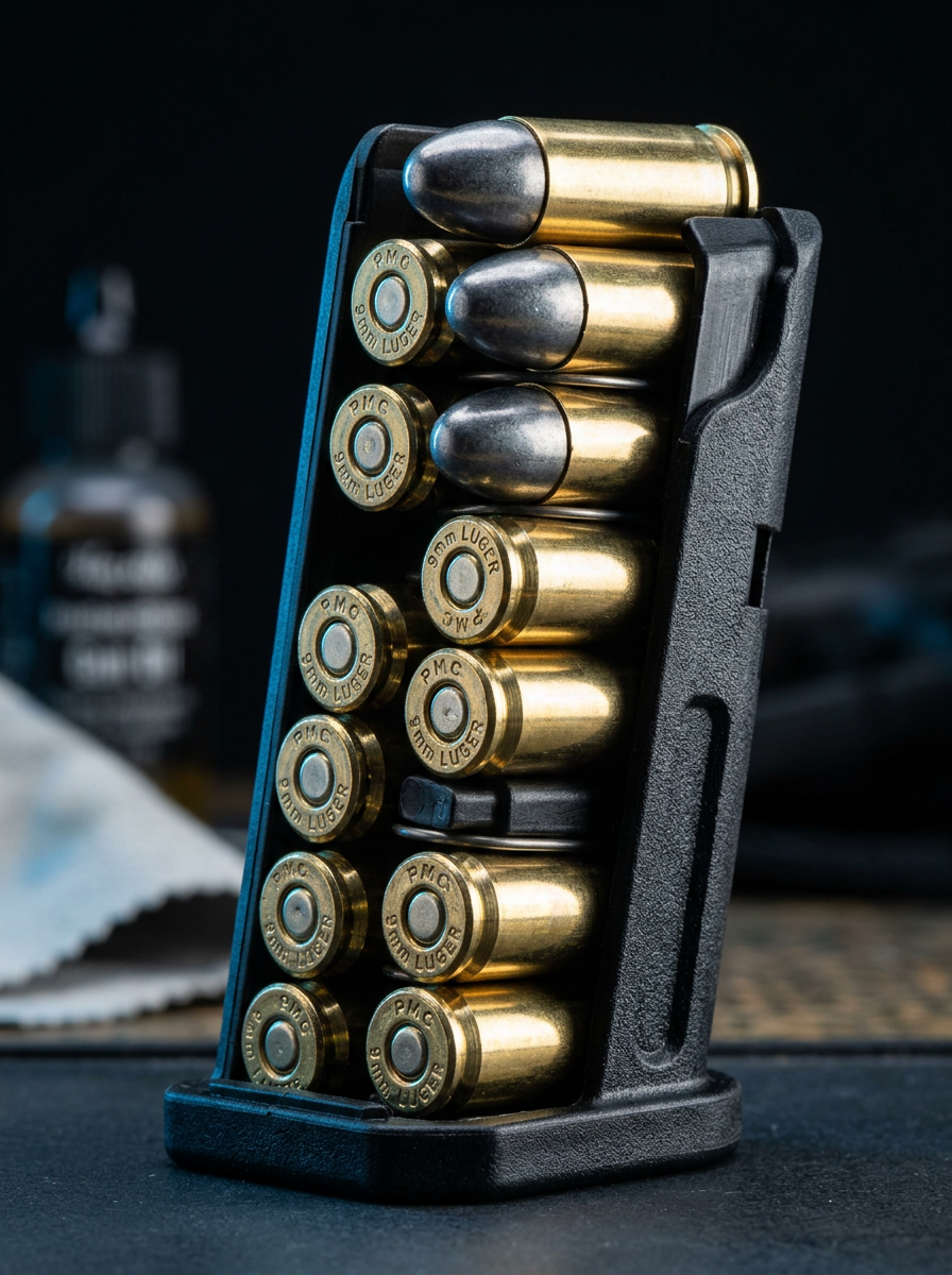 Works with all major 9mm pistol magazines