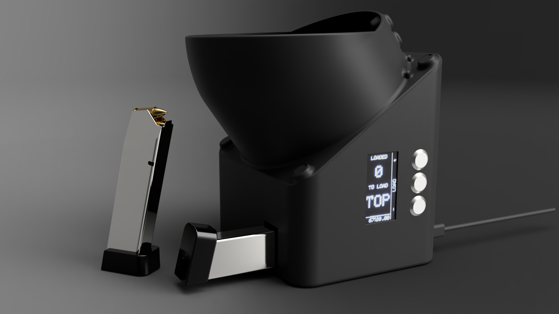 Explore the technical specs and benefits of the automated 9mm magazine loader. Engineered for speed, it loads 30 rounds in under 30 seconds.