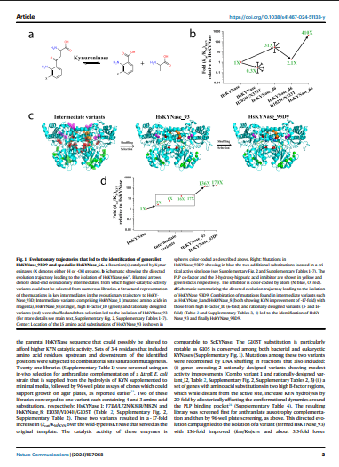 Homo sapiens kynureninase (HsKYNase) is a pyridoxal-5'-phosphate dependent enzyme vital for tryptophan metabolism and cancer immunotherapy. It catalyzes the hydrolysis of L-Kynurenine (KYN) or 3-hydroxykynurenine (OH-KYN). Understanding its evolution helps design better therapeutic enzymes.