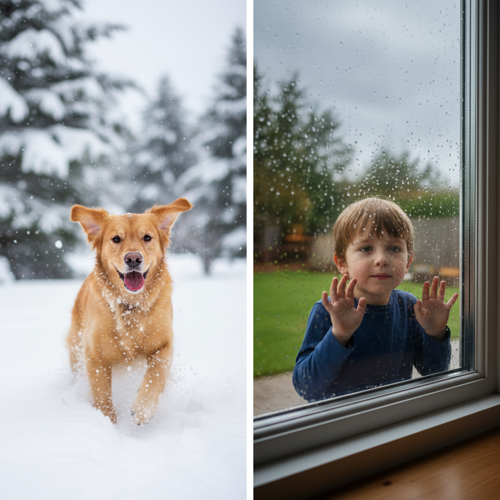 <strong>Winter:</strong> Cold, snowy, freezing.