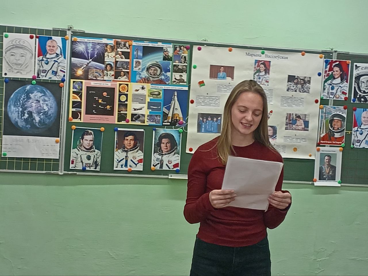 Асобная ўвага ў пазакласнай рабоце надаецца тэме касманаўтыкі. Інфармацыйныя стэнды распавядаюць пра подзвігі касманаўтаў і ўклад беларусаў (Марына Васілеўская) у засваенне космасу.