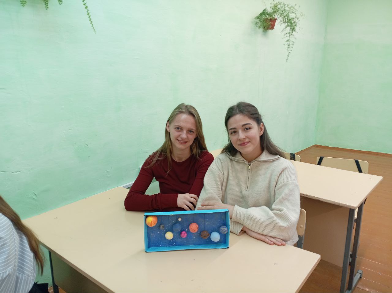 Вучні прымаюць актыўны ўдзел у стварэнні наглядных дапаможнікаў. Прыклад творчай працы — мадэль Сонечнай сістэмы, вырабленая сваімі рукамі.