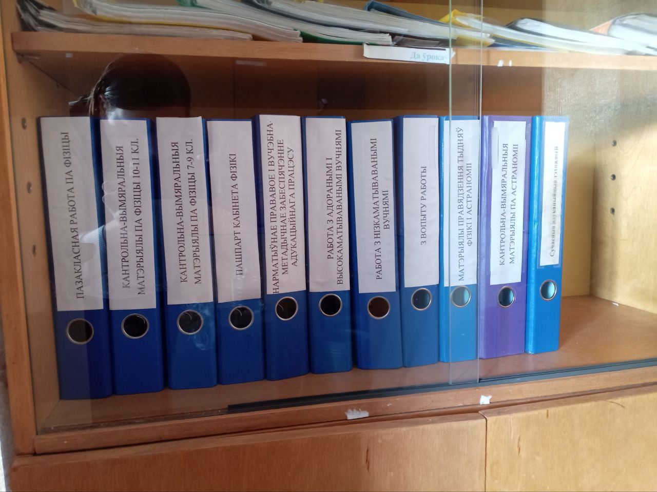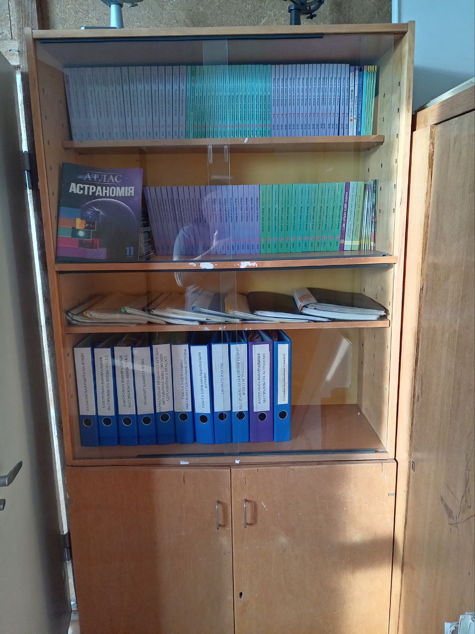У кабінеце сабрана бібліятэка неабходнай літаратуры: атласы па астраноміі, зборнікі задач, рабочыя сшыткі і метадычныя дапаможнікі для вучняў розных класаў.