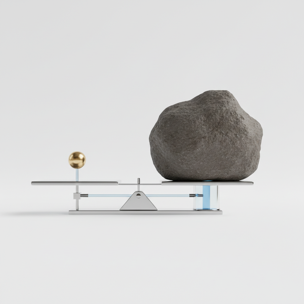 If a force F1 is applied to a small piston of area A1, the pressure P created is P = F1/A1. This same pressure is transmitted to the larger piston A2. Therefore, the upward force F2 on the larger piston is F2 = P × A2, resulting in F1/A1 = F2/A2.